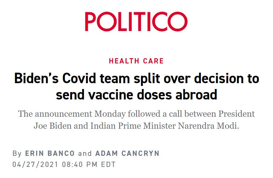 Biden used the Defense Production Act, which Democrats criticized Trump for not using enough, to cut off the supply of vaccine production raw materials to India, putting India in a position where they were unable to produce enough vaccines for their 1.4 billion population.