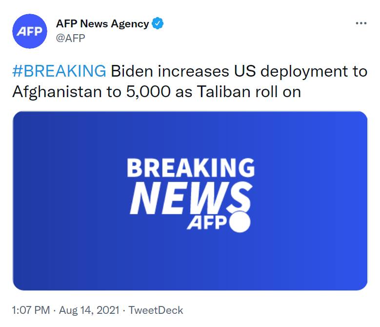 President Sleepy Joe finally woke up, warns Taliban of military response if U.S. Embassy in Kabul is attacked.