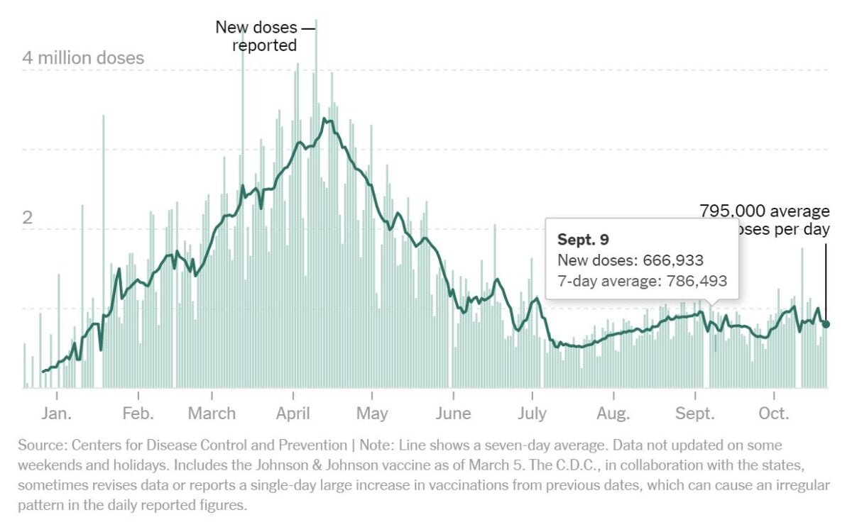 Biden told the audience in a CNN town hall that his vaccine mandates are working, but the current 7-day average of 795K is hardly that different from the 7-day average of 786K the day he announced his mandate.