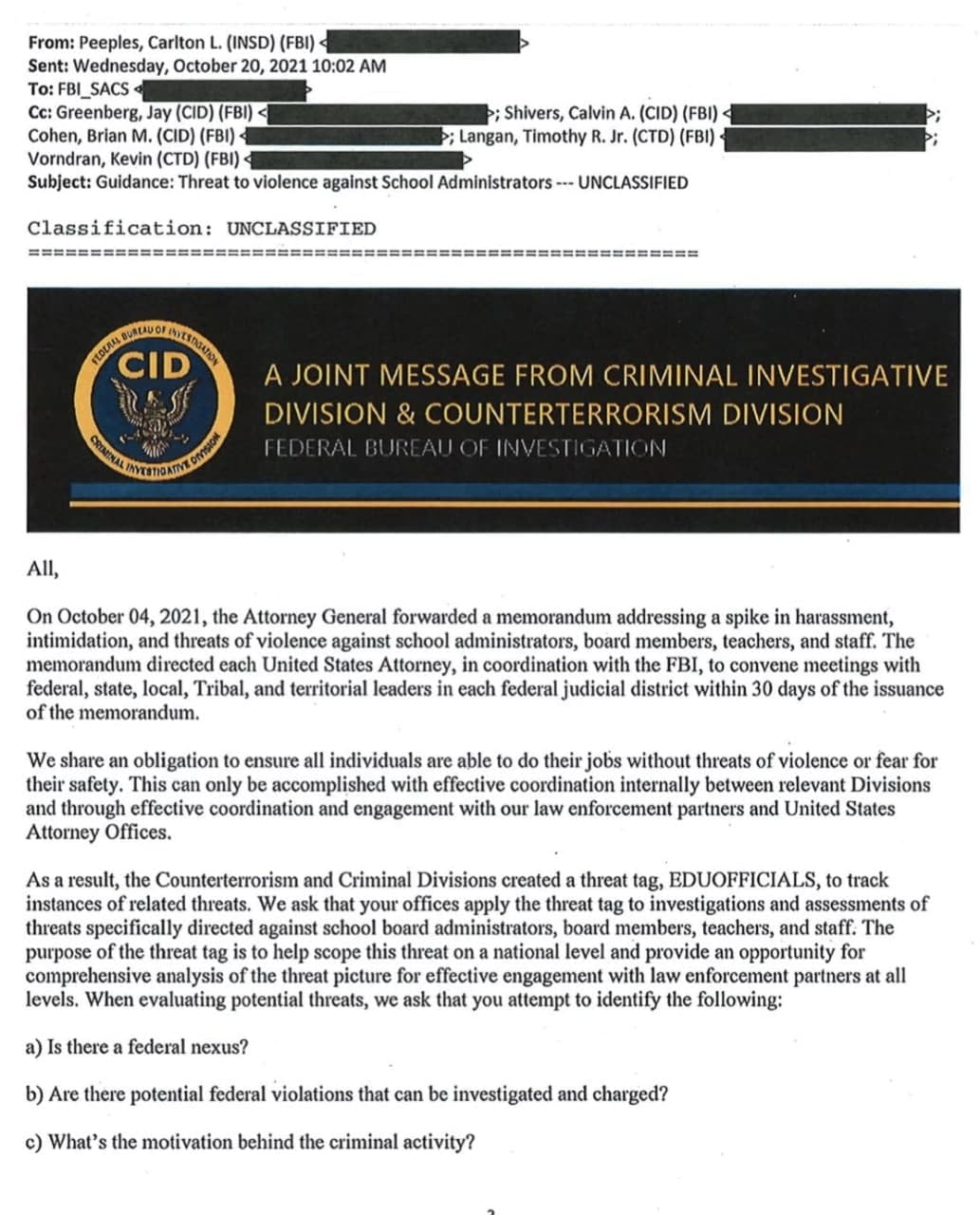 Categories via Facebook FBI Counterterrorism Division is investigating parents Post author By W. Post date November 16, 2021 No Comments on FBI Counterterrorism Division is investigating parents FBI Counterterrorism Division is investigating parents. ^ ← The long tail has become too fat for me… → Iowa GOP poll, Trump leads DeSantis, 55.7% vs. 12.3%… Leave a Reply Cancel replyYour email address will not be published. Required fields are marked *Comment * Name * Email * Website Save my name, email, and website in this browser for the next time I comment. Δ