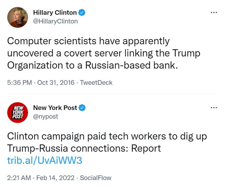 Computer scientists hired by the Clinton campaign were paid to dig up Trump-Russia connections, which failed to turn anything up, so Hillary’s lawyer instead lied to the FBI about a covert server linking the Trump Organization to a Russian-based bank.