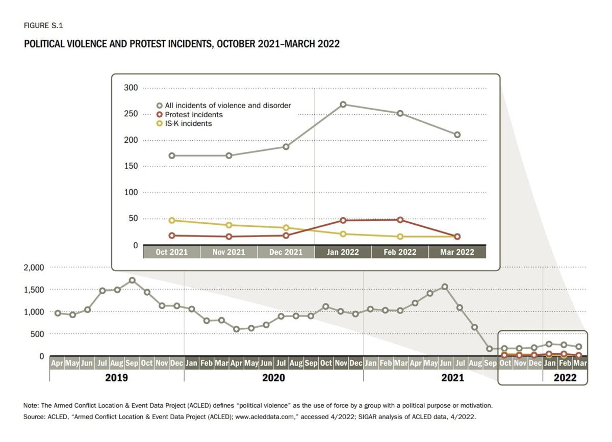 UNAMA still hasn’t published its 2021 Q3 Afghanistan civilian casualties report, but in the meantime, SIGAR published an ACLED data report showing that violence in Afghanistan is at its lowest point since at least 2019, when data collection began.