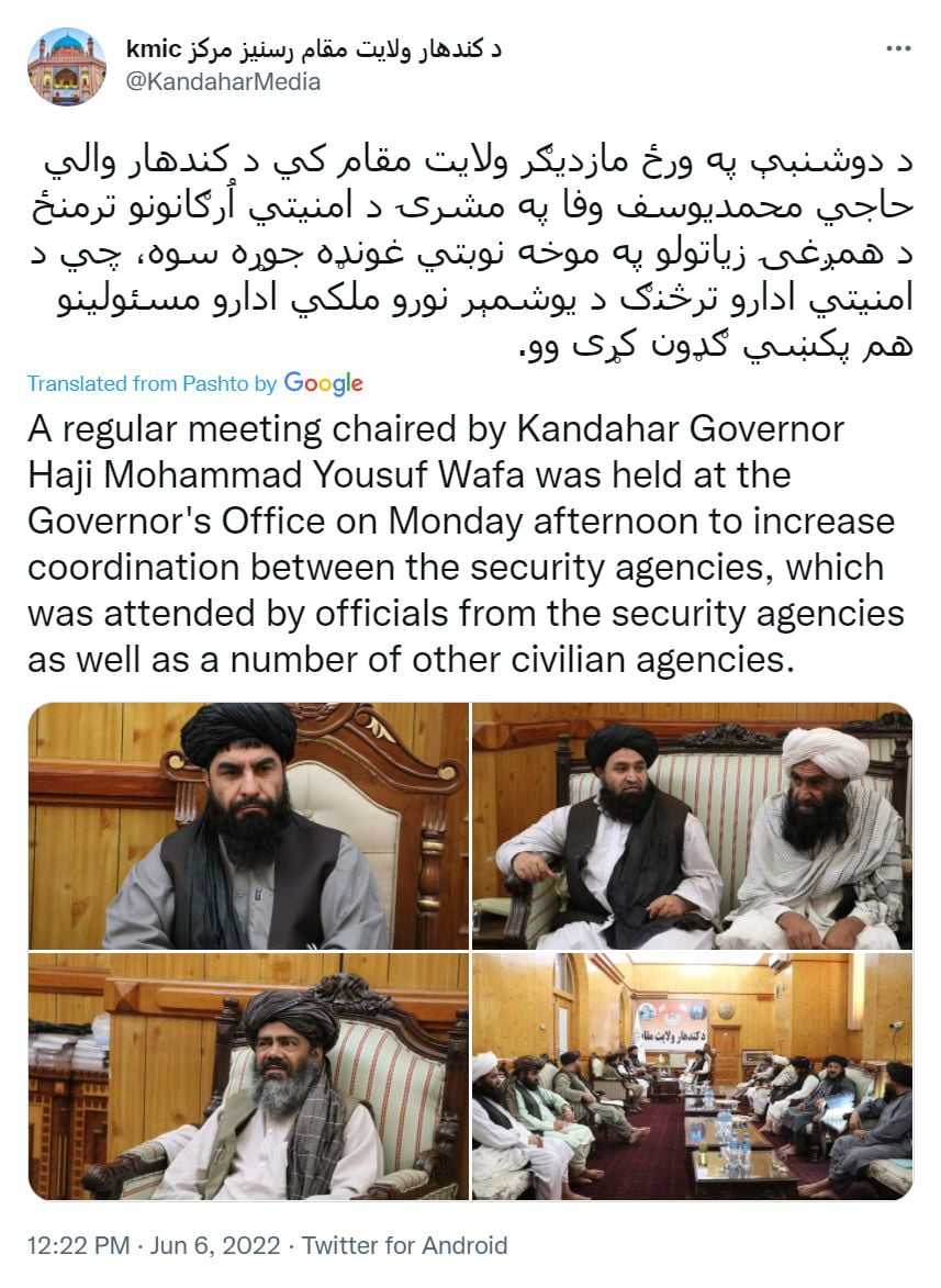 Kandahar governor Wafa holds a meeting to increase coordination between Kandahar security agencies.