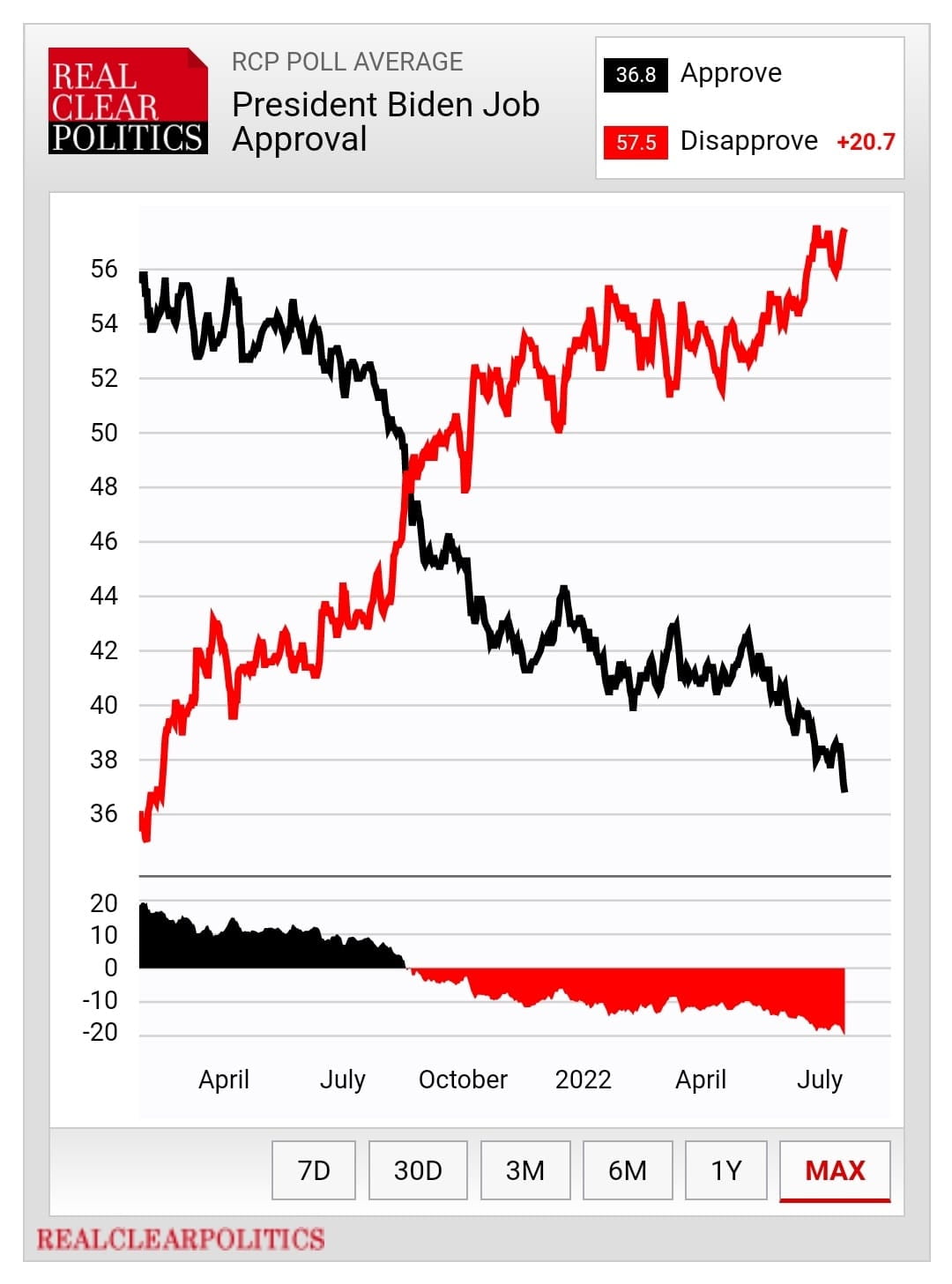 Biden RCP average approval down to 36.8%, a new low of -20.7.