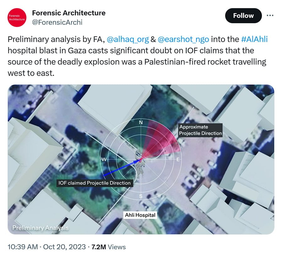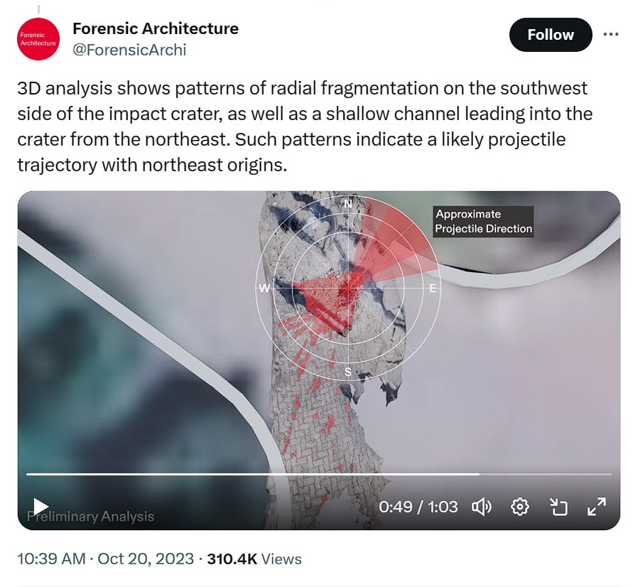 — Forensic Architecture (@ForensicArchi) October 20, 2023