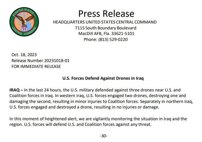 Kataib drone and rocket strikes on US compounds in Al-Tanf and Conoco in Syria.