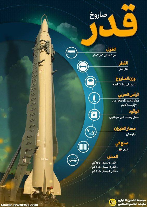Iranian made ballistic missile Qader-1 launched by Hezbollah at Mossad HQ in Tel Aviv, Israel.