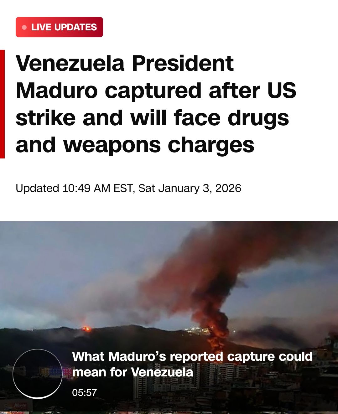 Categories via Facebook Trump captures Maduro Post author By W. Post date January 3, 2026 No Comments on Trump captures Maduro Trump captures Maduro. ^